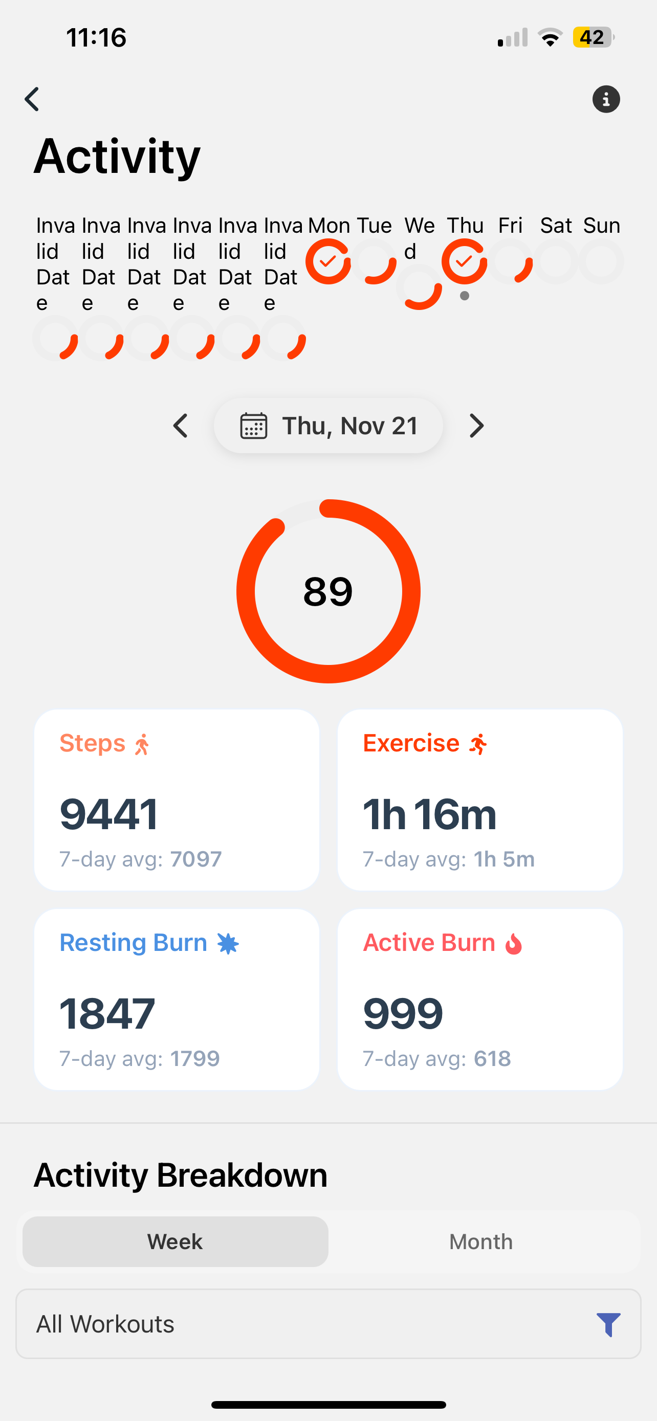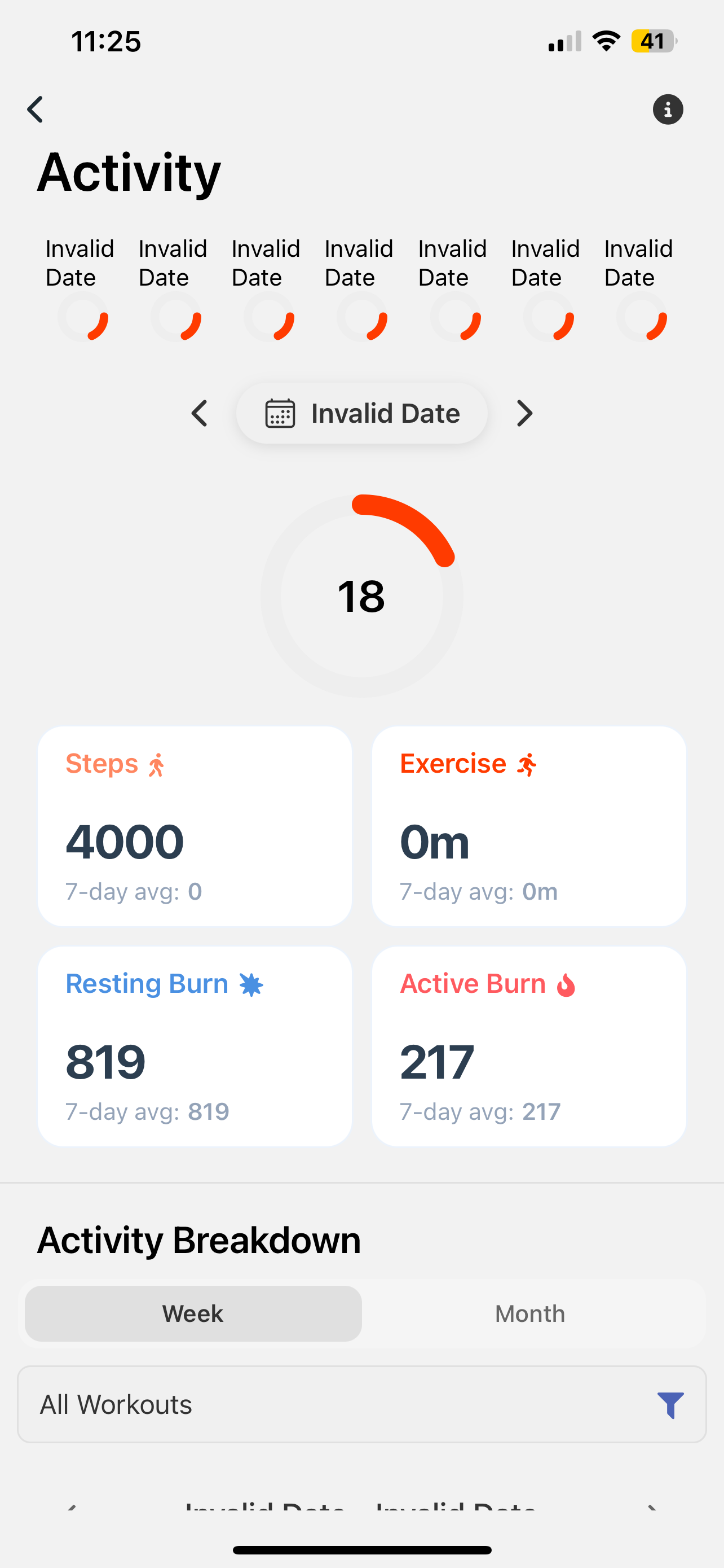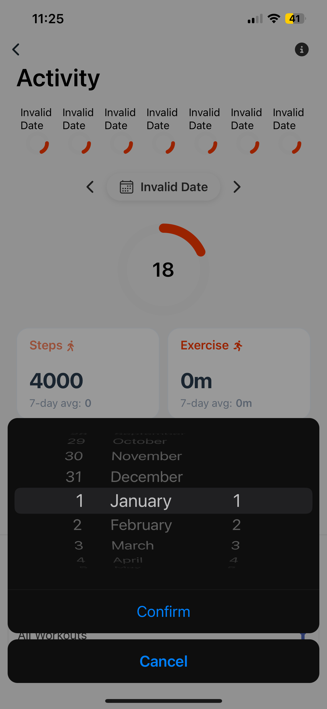 The strange thing is that when you open the same screen from the “Exercise” widget on the home screen it’s all good and normal